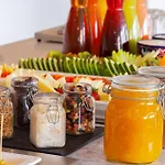 | Serviço de transporte Serviço de transporte (custo adicional) | Comida/Bebida Restaurante | Comodidades para reuniões Centro de negócios |